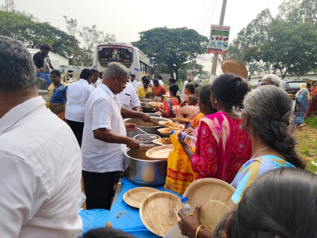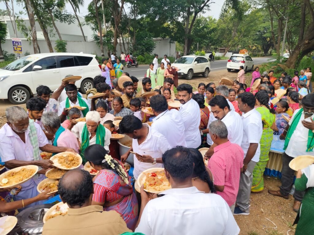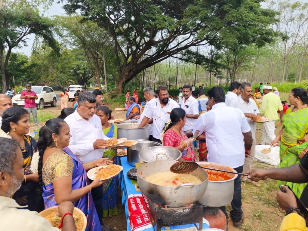 450 நபர்களுக்கு மதிய உணவு முட்டை கிரேவியுடன் சிக்கன் பிரியாணி வழங்கிய நிகழ்வு